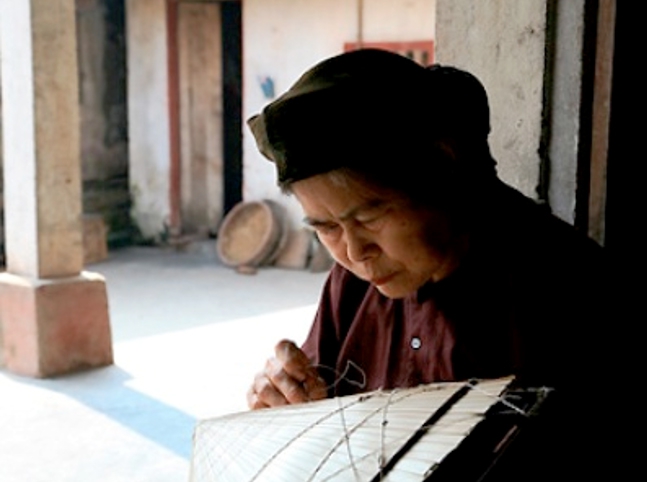 Từ những bàn tay khéo léo của các nghệ nhân những thanh tre được chuốt nhẵn rồi uốn thành vòng tròn có đường kính to nhỏ khác nhau thành những vành nón. Vành nón to có đường kính đến 50cm, cái tiếp theo nhỏ dần, có đến 16 vòng khác nhau, vòng nhỏ nhất cũng chỉ bằng đồng xu. Tất cả được xếp lên một khuôn hình chóp.