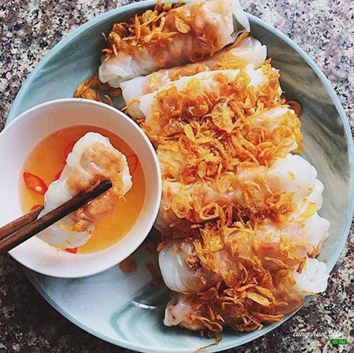Những “người sành ăn” thường thưởng thức bánh cuốn ngay khi nó còn đang nóng hổi. Gắp lên một miếng bánh cuốn, kèm thêm chút rau thơm, chấm vào nước chấm rồi thưởng thức. Vị mềm mềm, dai dai của vỏ bánh, vị ngọt đậm đà của nhân bánh, vị thơm dậy của hành khô phi vàng, cùng với nước chấm quyện lại với nhau, hòa tan trong miệng.