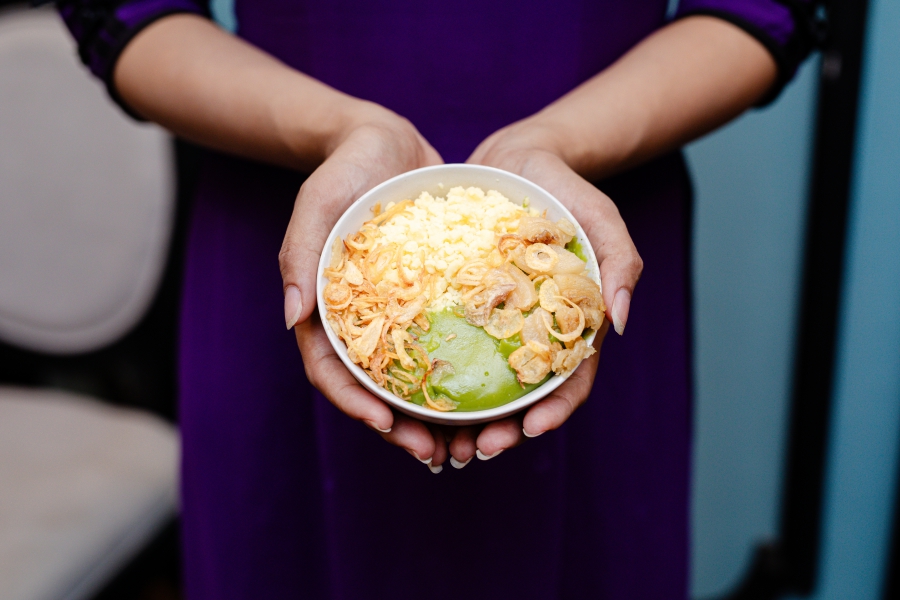 Chỉ một thìa đầu tiên thôi, cái mềm mượt dẻo ngậy của bột gạo đã tan ngay đầu lưỡi, hòa quyện với vị bùi ngọt của đậu xanh, thoảng nhẹ mùi rau ngót tươi và điểm nhấn là cái giòn giòn, béo béo của tóp mỡ, hành phi.