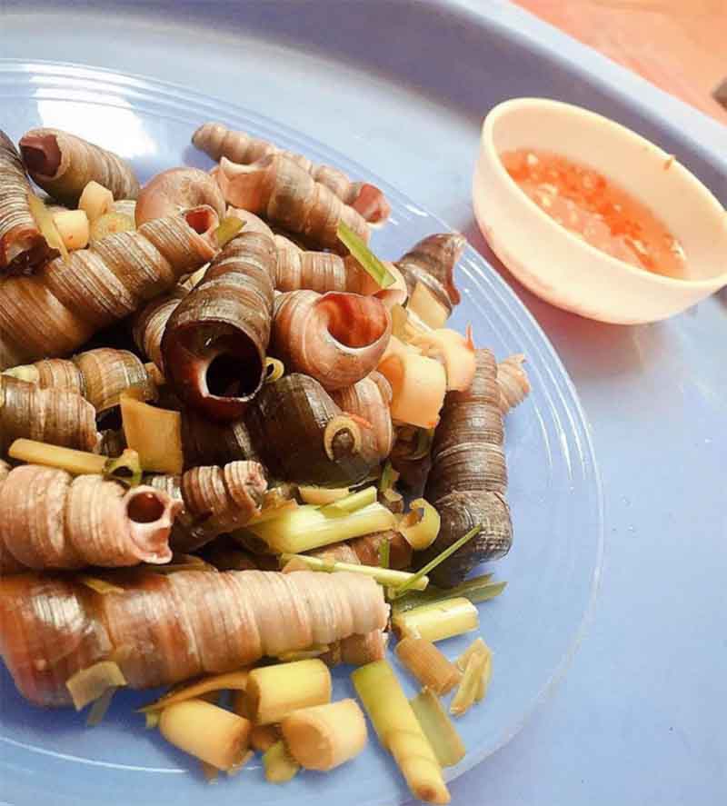 Những chú ốc tươi béo đầy miệng nằm ngon lành trên đĩa tỏa ra nghi ngút khói, mùi thơm của sả ớt cay nồng quyện cùng vị ốc đậm đà làm kích thích bất kỳ ai khi ngang qua phố Bến Ngự, TP Thanh Hóa mỗi buổi chiều.